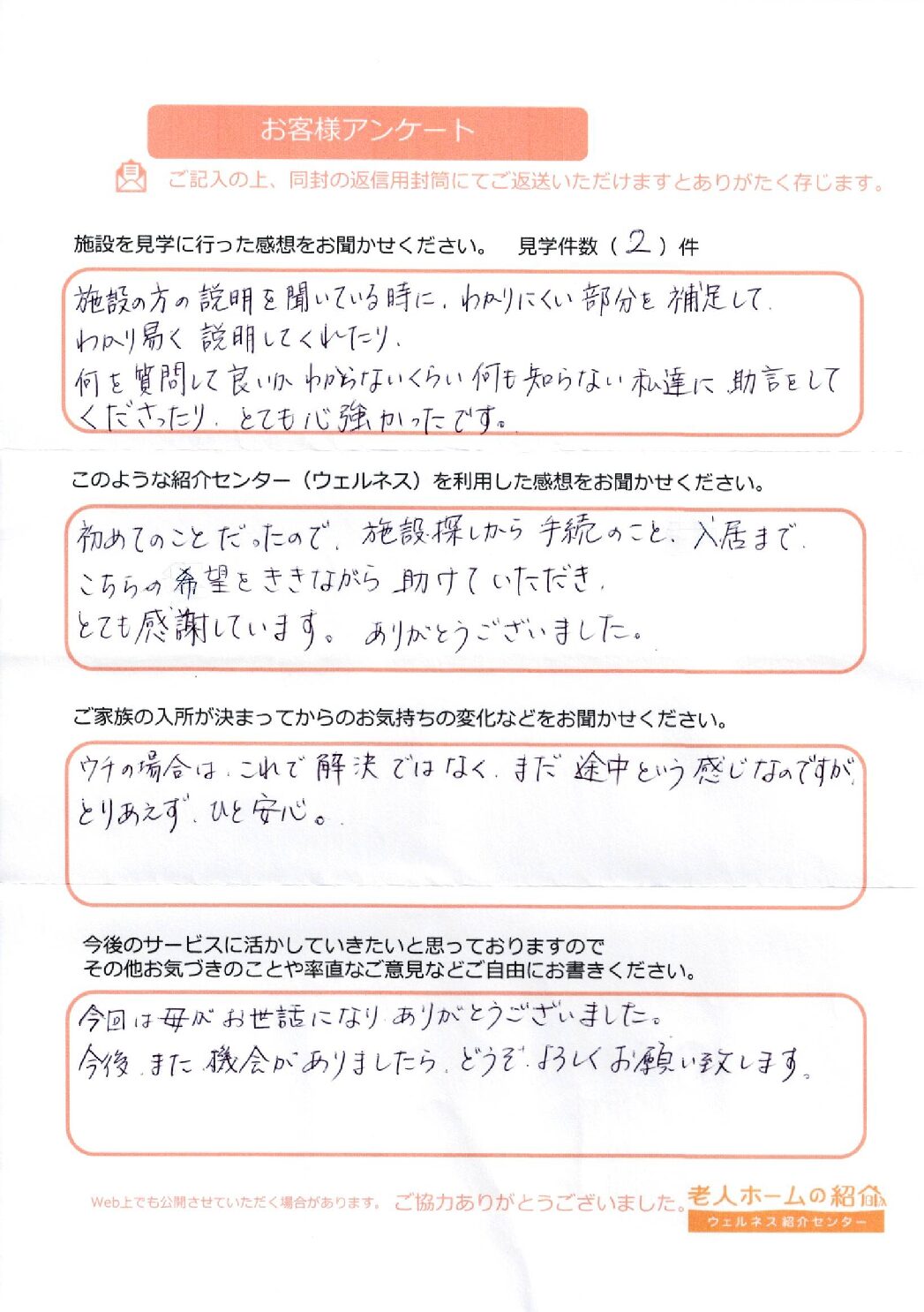 施設へのご入居でいちばん大切なことは、ご本人様とご家族が「これで良かった。」とご納得されることです。