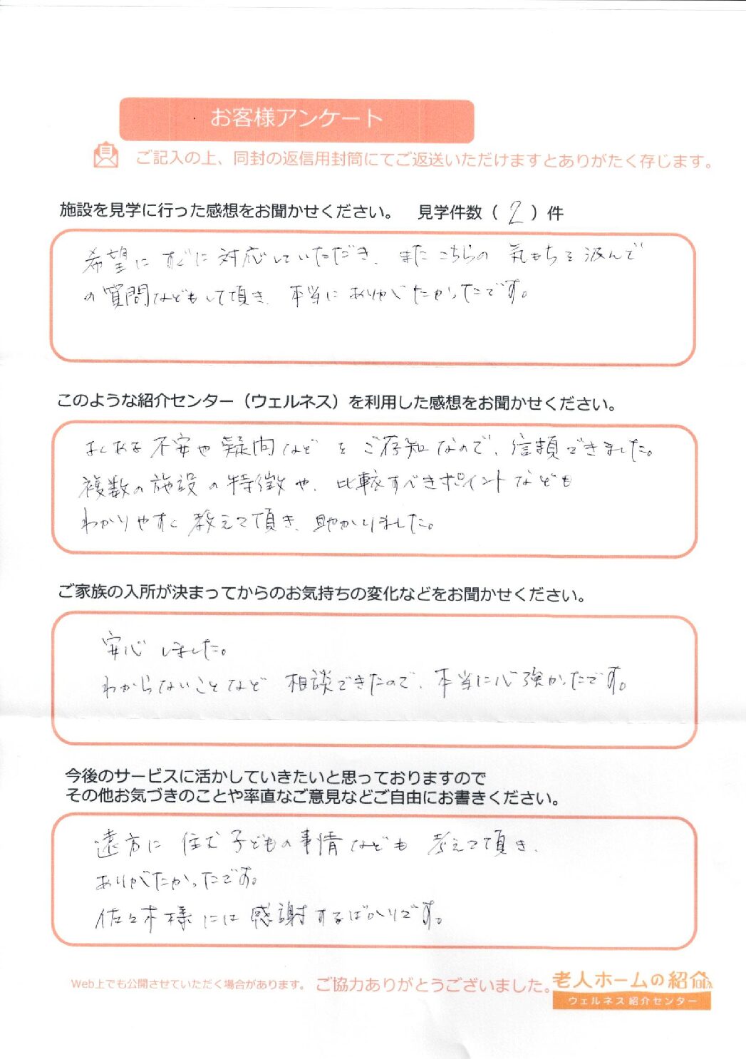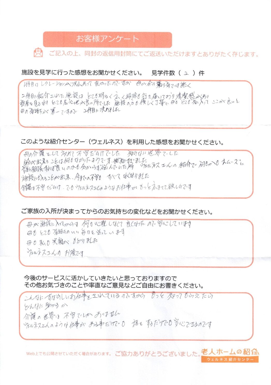 施設を見学した経験も全くなかったので付き添って頂いて心強く感じました。