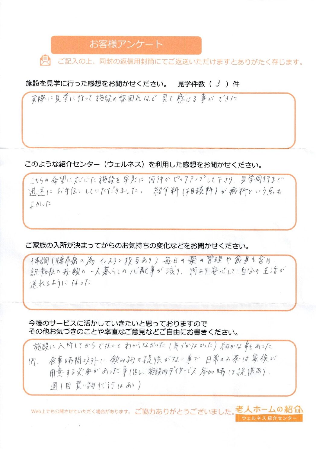 【施設を見学に行った感想をお聞かせください。】 1日で3件見学し、疲れましたが比較もしやすくて良かったです。父を良く見てもらえそうな所にその日に決めました。 【このような紹介センタ...